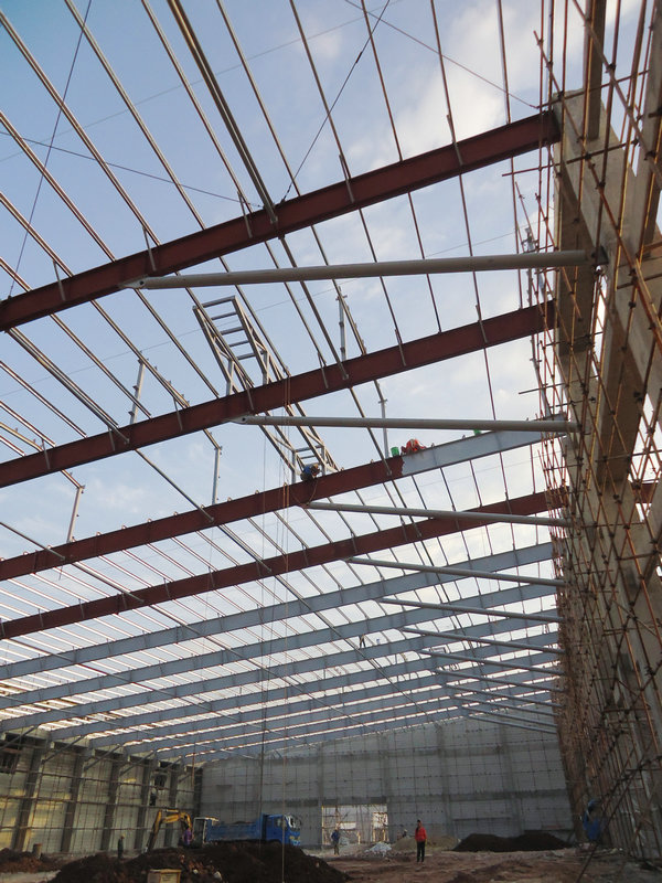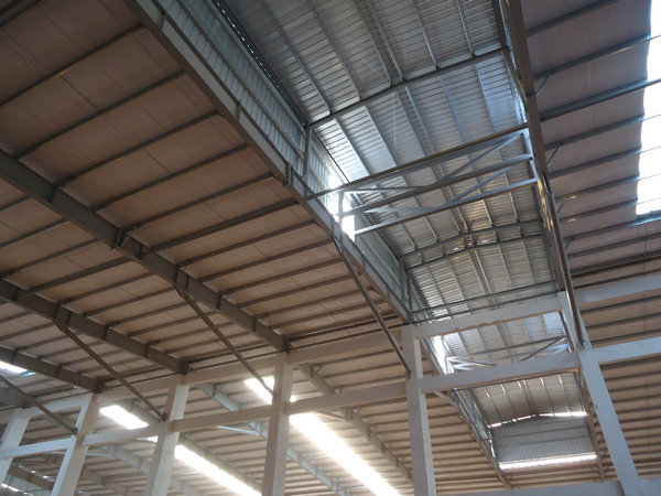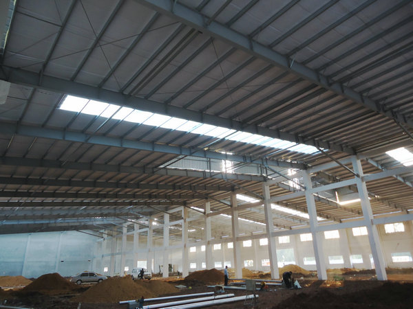 大瀝精工廠房位于佛山市南海區(qū)獅山大瀝。占地面積為15200平方米,主鋼架結(jié)構(gòu)采用混凝土柱和H型焊接鋼梁相結(jié)合方式。墻體用磚墻,屋面用單彩板。屋面布置通風氣樓以此為空氣循環(huán)使用。以下是部分廠房安裝圖片:
